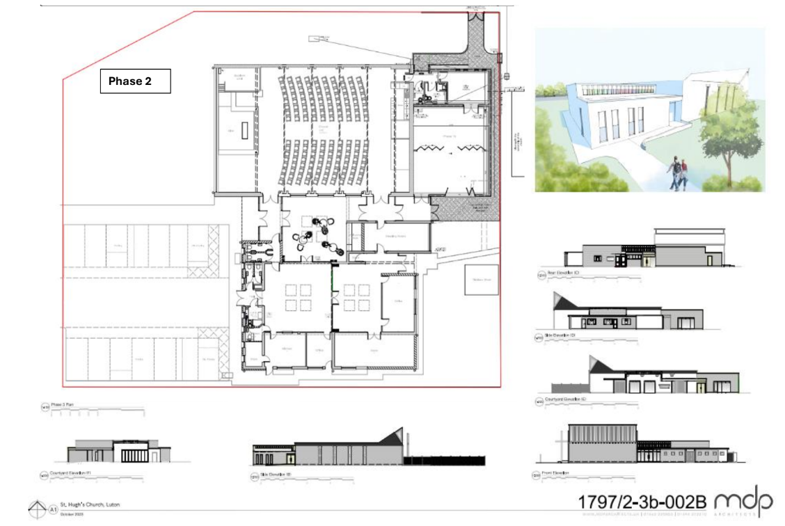 We have successfully received planning and building control permission for the re-development of the site at St Hugh’s to give us the ability to serve our local community and to expand the effectiveness of the Music Academy. Initially we want to raise the £150k needed to put in place a music academy classroom/ studio with accessible toilets, (see Plan above) which connects with the Church auditorium where the drums/guitars and other classes take place.